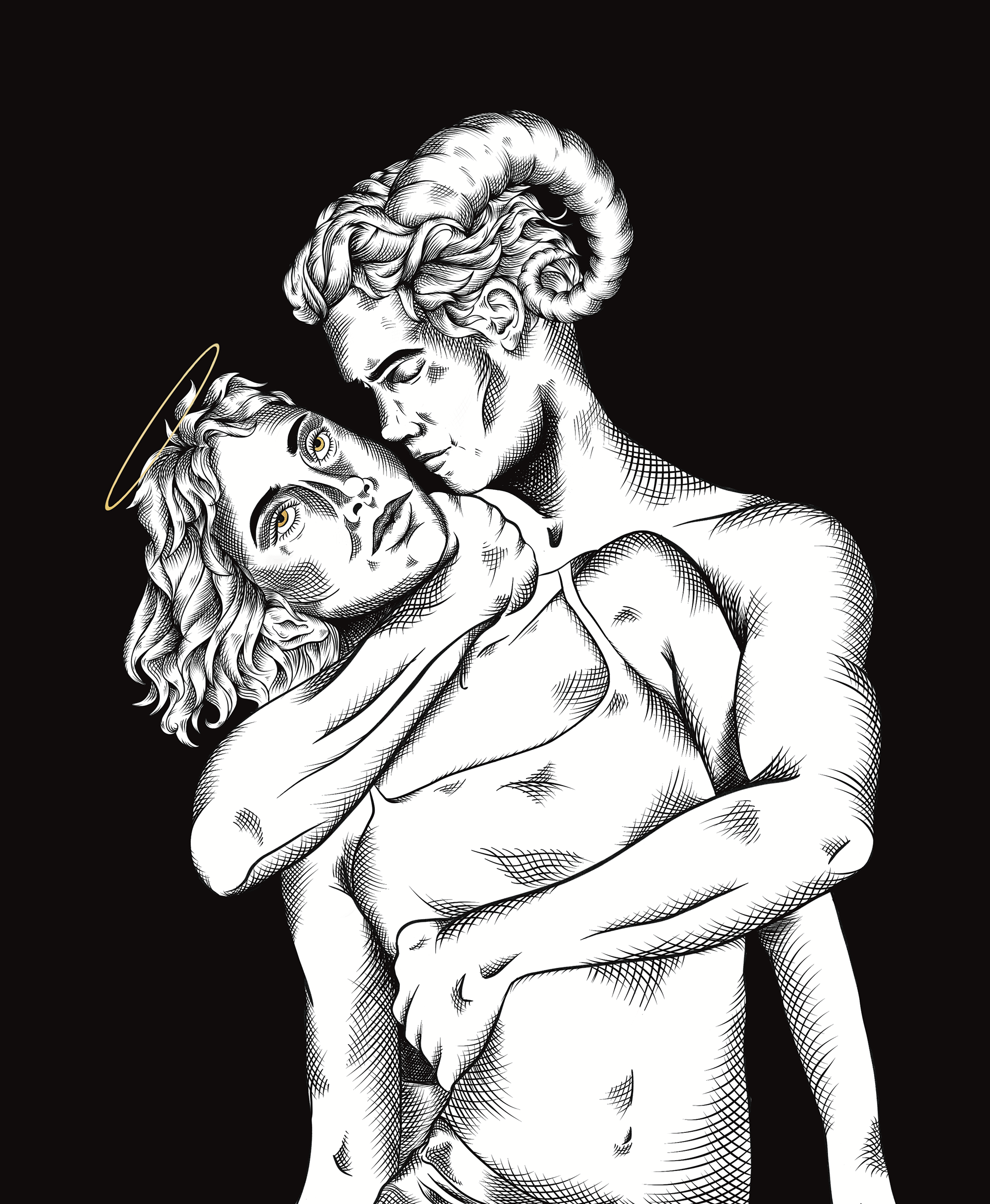Crosshatch and figure drawing practice for personal use. I wanted to incorporate mystical elements such as the goat horns for the male figure and a halo for the female to help demonstrate the delicate dance between good and evil.